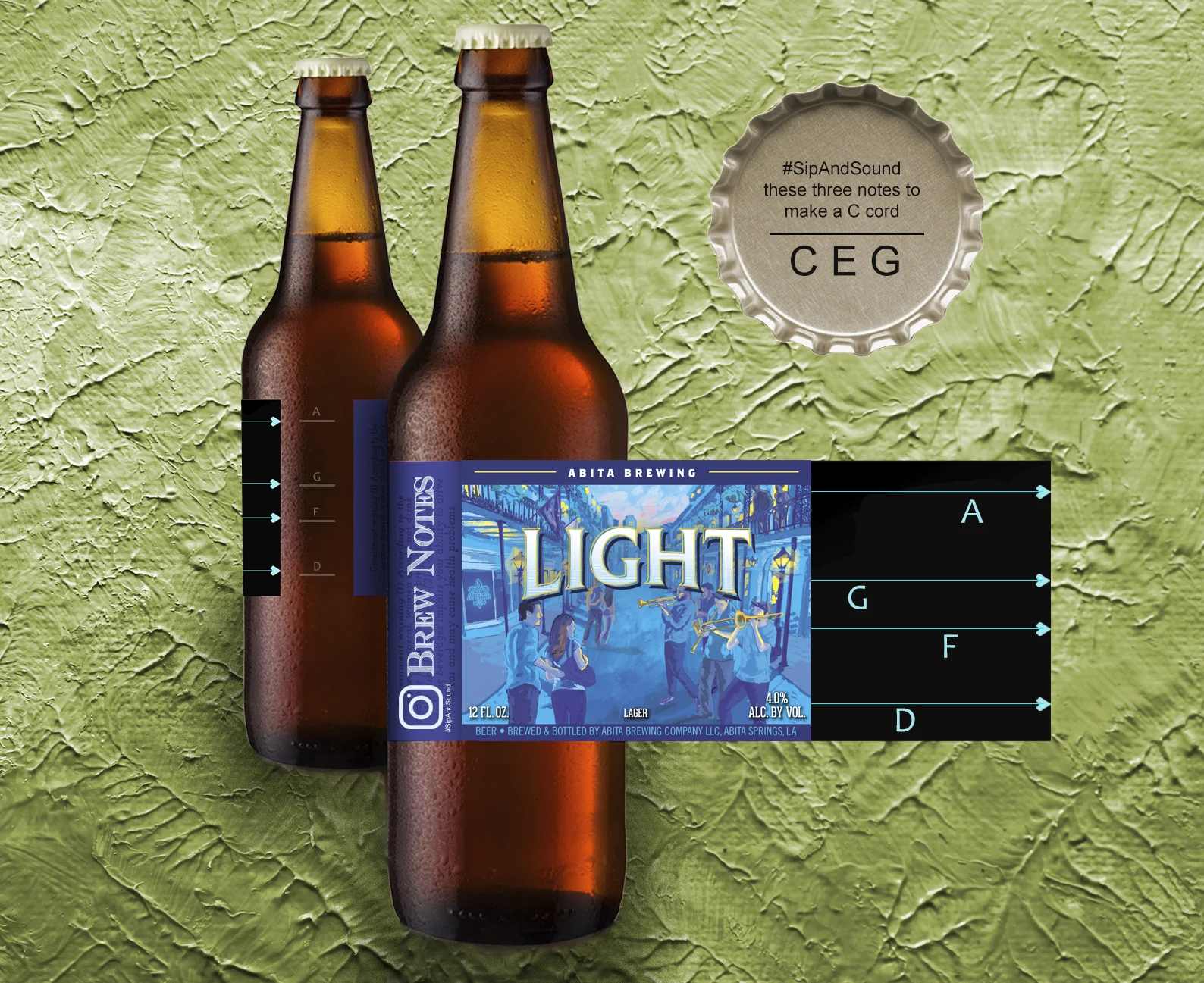Overview: Brew Notes, a musical bottle series that indicates how much to drink in order to hit certain notes when blowing into the bottle.