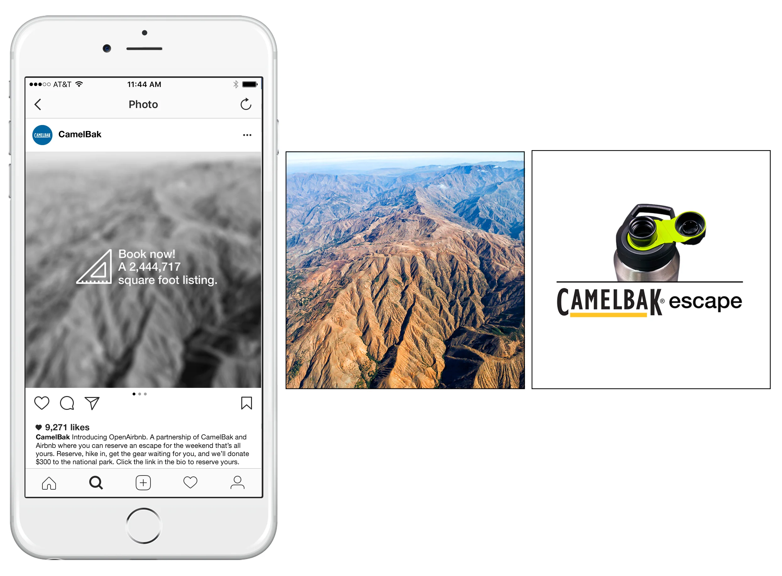 Overview: This is CamelBak with AirBnB giving you an excuse to escape. Book the land, grab the bag, get in the car and runaway.